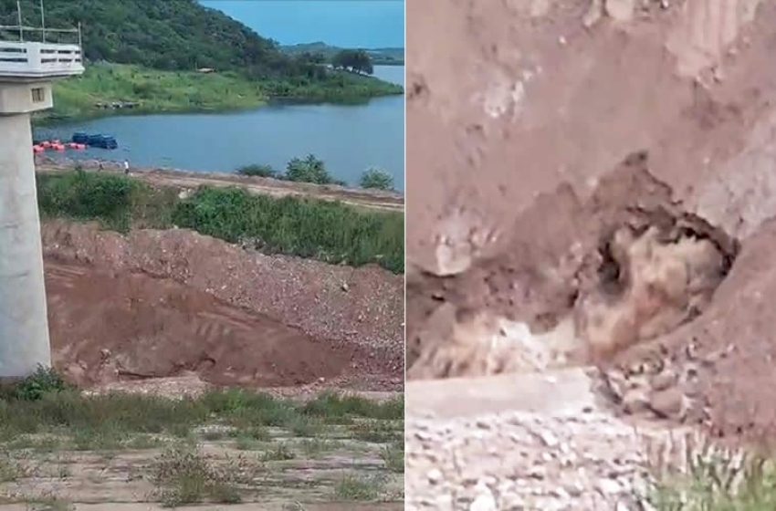O buraco que se formou, segundo o Dnocs, aconteceu por causa da pressão da água das chuvas numa barreira de contenção chamada de ensecadeira. Ela existe para conter o fluxo da água quando o açude sangra.